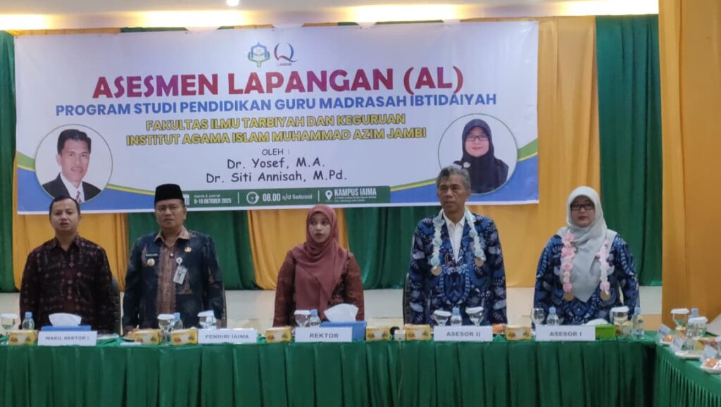 Jambi, 9–10 Oktober 2025 – Lembaga Penjaminan Mutu (LPM) Institut Agama Islam Muhammad Azim (IAIMA) Jambi ikut mensukseskan Asesmen Lapangan pada Program Studi Pendidikan Guru Madrasah Ibtidaiyah (PGMI) Fakultas Ilmu Tarbiyah dan Keguruan (FITK). Kegiatan ini merupakan bagian dari proses akreditasi program studi yang dilakukan oleh Lembaga Akreditasi Mandiri Kependidikan (LAMDIK).