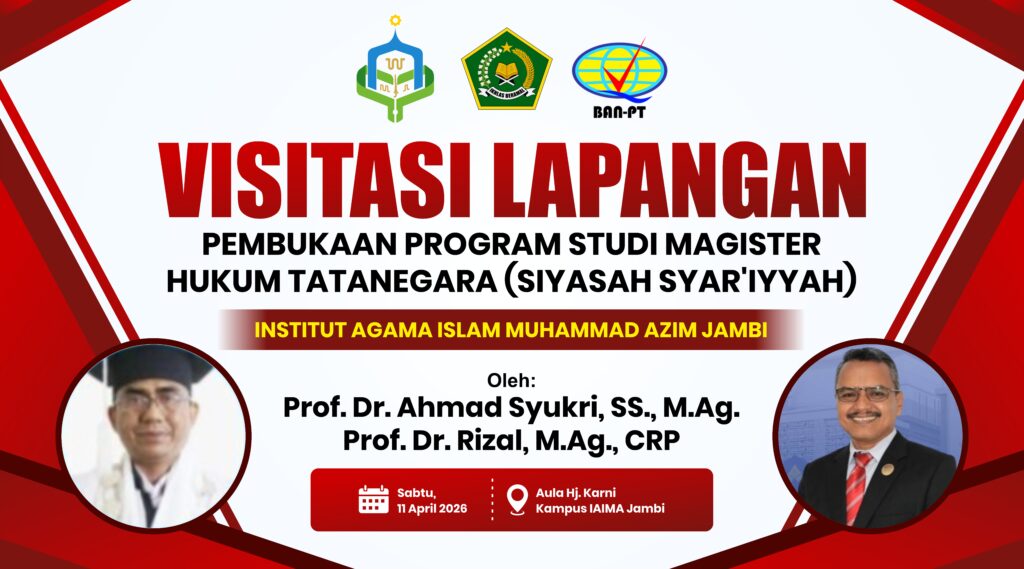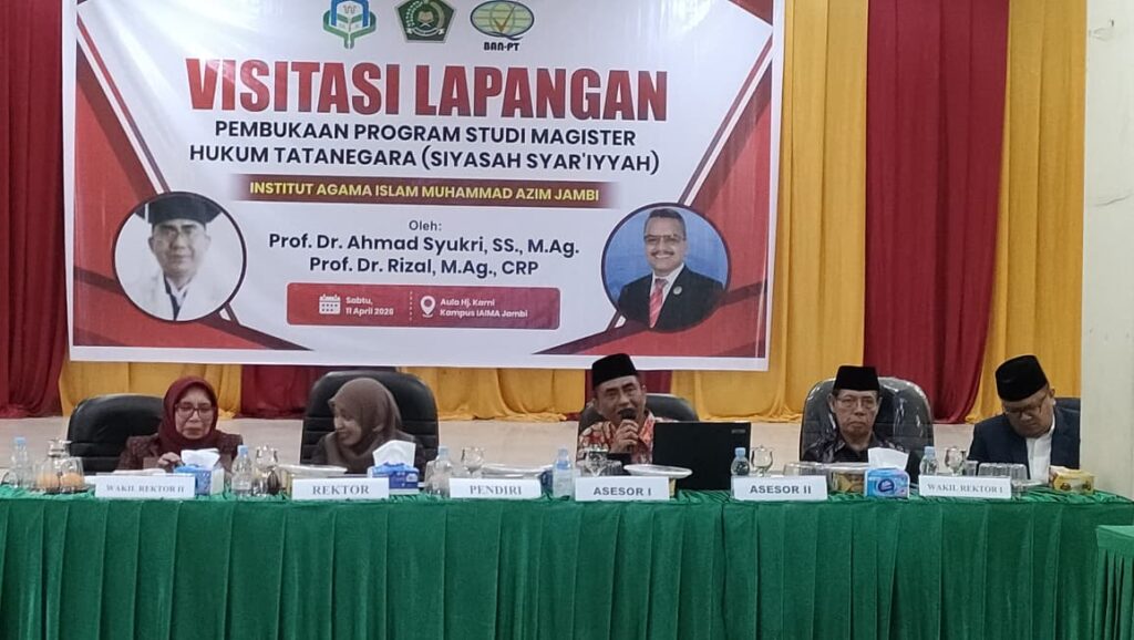 Jambi– Institut Agama Islam Muhammad Azim (IAIMA) Jambi melaksanakan kegiatan visitasi lapangan dalam rangka pembukaan Program Studi Magister Hukum Tatanegara (Siyasah Syar’iyyah) pada Sabtu, 11 April 2026. Kegiatan ini berlangsung di Aula Hj. Karni Kampus IAIMA Jambi dengan penuh khidmat dan antusiasme dari seluruh civitas akademika.